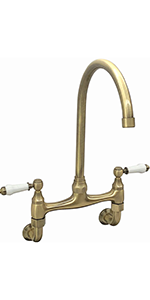 • DURABLE- The solid brass construction with antique brass finish is easy and safe to use and has 'drip free' quarter turn ceramic valves. The swivel spout, swan neck & quarter turn ceramic valves for precise flow control, maximise performance & style.